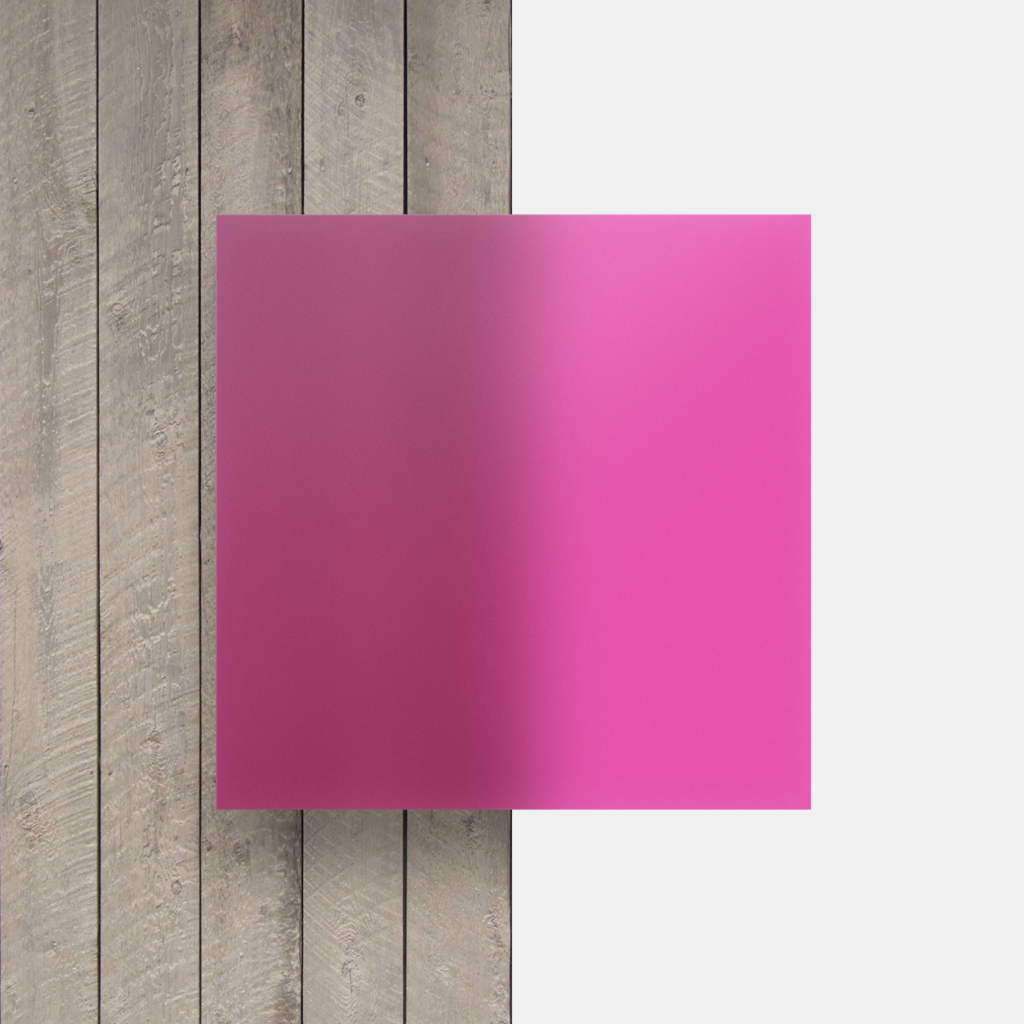 Die Acrylglas Frost Platte ist Magenta und besticht durch ihre besondere matte Optik, die durch eine spezielle Sandstrahltechnik erreicht wird. Diese Behandlung verleiht der Platte ihre gefrorene (matte) Ausstrahlung. Acrylglas Frost Magenta lässt nur eine begrenzte Menge Licht durch und eignet sich daher hervorragend als Blickschutzglas.